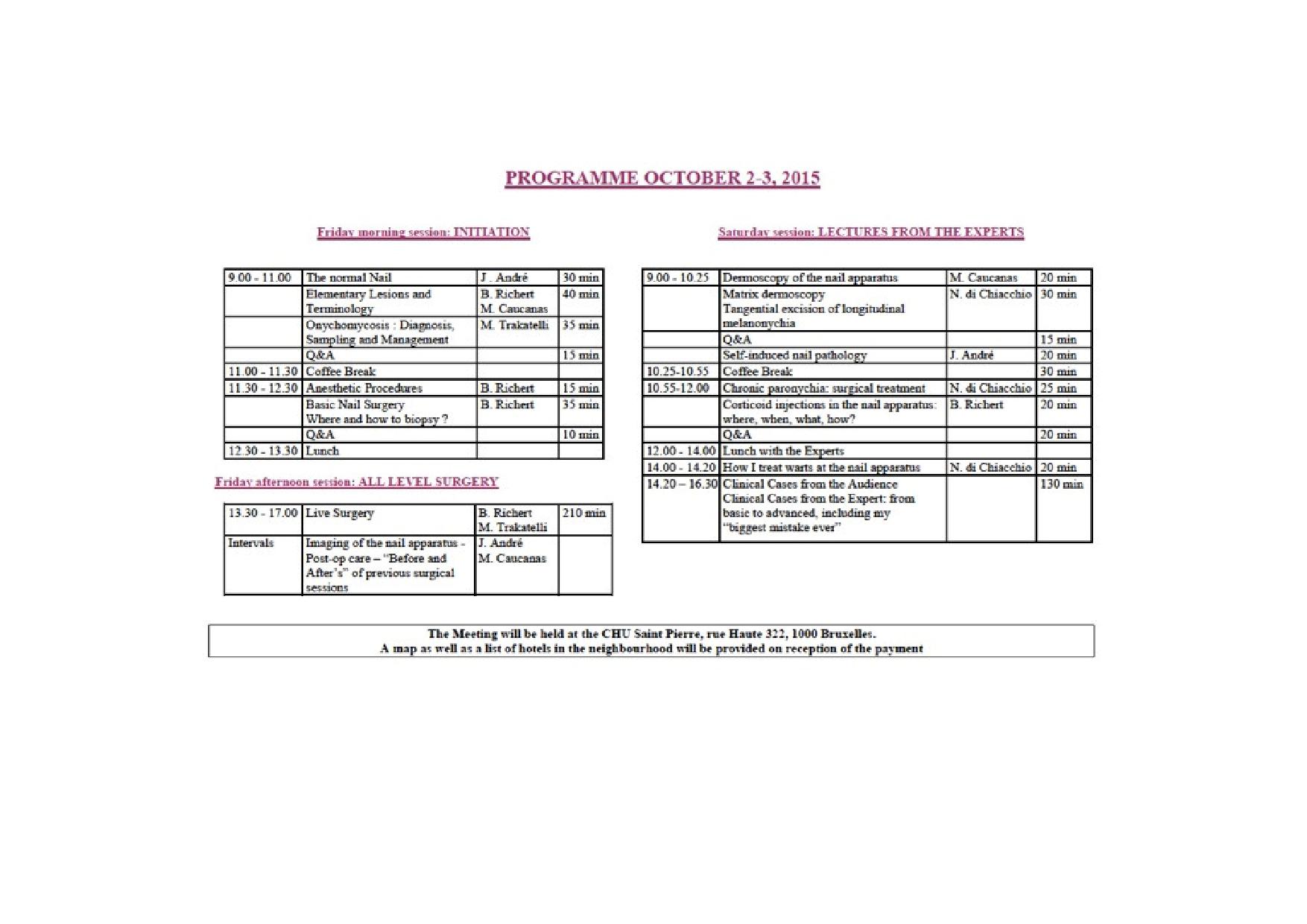 You will find below the program that we have prepared for you. We are pleased to welcome this year, Prof. Bianca Maria PIRACCINI (Bologna, Italy), Dr Matilde IORIZZO (Lugano, Switzerland) and Dr André LENCASTRE (Lisbon, Portugal) as invited speakers.
